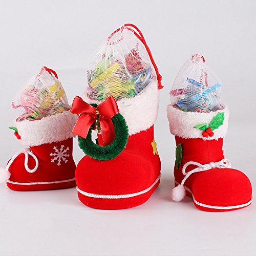 THEE 3pcs Gift Bags Christmas Candy Bag Santa Claus Boot
