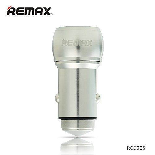 Remax Dual USB Car Charger, 2 Port Adapter with Escape Emergency Safety Hammer Function for iPhone iPad iPod Android Smartphone Silver