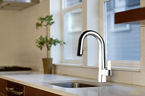 - ULTRA CONVENIENT: That kitchen faucet comes with a unique pull down design that provides ergonomic benefit it's one fluid hand motion (pulling down) without having to twist and maneuver the hose to the side in the kitchen sink!