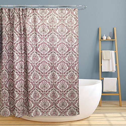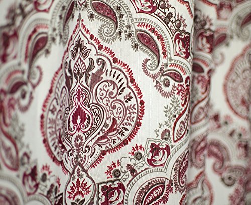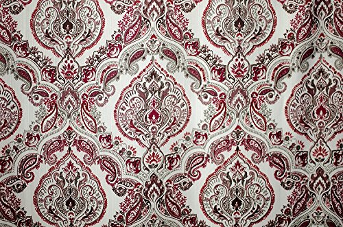 Fabric Canvas Shower Curtain, 70"x70", Rose, Burgundy Paisley Damask Design