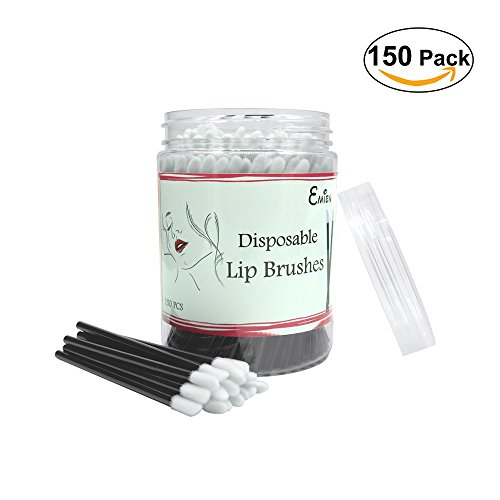 EMiEN 150 Pieces Disposable Lip Brushes Lipstick Gloss Wands with Soft Brush Head Applicator Makeup Tool Kits with Barrel Container - Wool Materials: Fiber