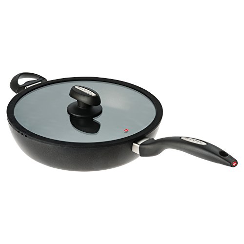 Luxurious Danish design, traditional, solid craftsmanship and the latest advances in technology combine to make Scanpan IQ the new cookware generation. Scanpan IQ is hand-crafted, squeeze-cast in recycled aluminum. IQ Cookware is suitable for induction and all other cook tops. The optimum thickness of the pan base prevents warping and keeps the pan base perfectly flat, especially important when used with glass top or ceramic ranges. The pan thickness and unique ceramic-titanium surface allows for browning, searing and deglazing. The patented nonstick surface is created by firing ceramic-titanium particles into the pan and a specially formulated nonstick compound is embedded in the ceramic-titanium surface. Durable surface allows use of metal utensils. Scanpan Green Tek non-stick surface is PFOA-free in all stages of the manufacturing process. Scanpan IQ Cookware can be used with high heat frying and is oven safe to 500-degrees. IQ Cookware features ergonomic handle design and lid knobs. Glass lid has vented silicone rim.Feature
