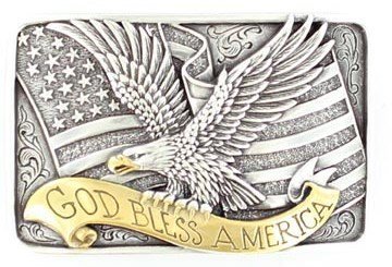 M F Western Products Womens MF God Bless America Square Buckle Silver