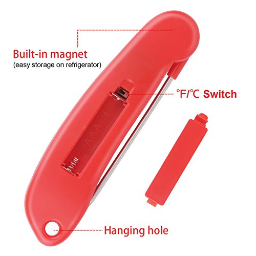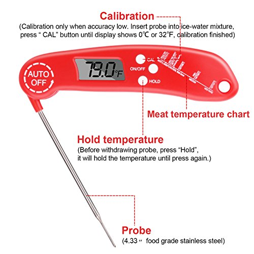 - SUPER FAST: By leaving in meat or liquids for 3-5 seconds, this cooking thermometer will read out the exact tempereture and keep the accuracy within ±1°C(± 1.8°F).