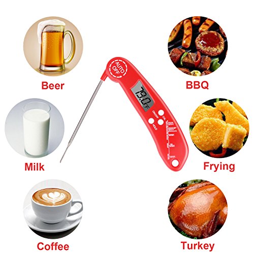 - WIDE RANGE: This digital food thermometer fits for barbecue, milk, tea, sauce, hot water, turkey, chicken, fish, oil, pork, beef and so on.