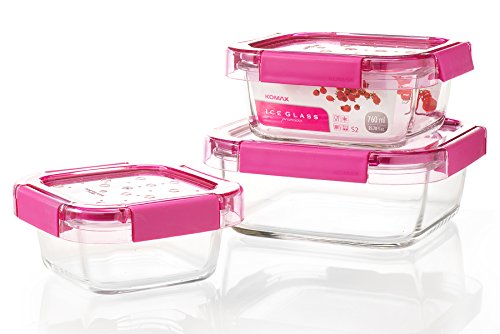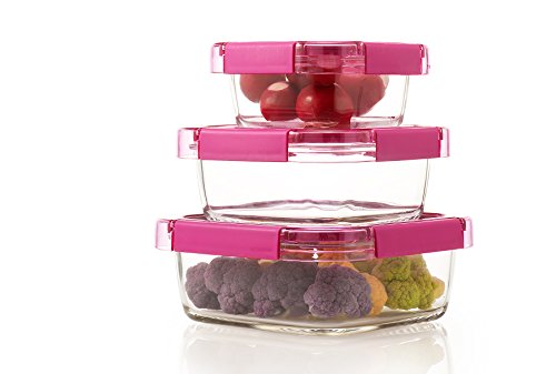 Komax Ice Glass Food Storage Containers, Square, Magenta (Set of 3)