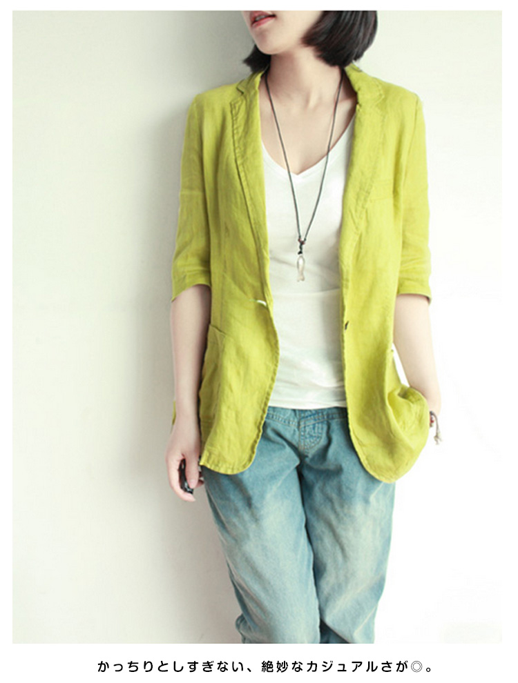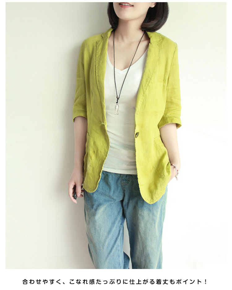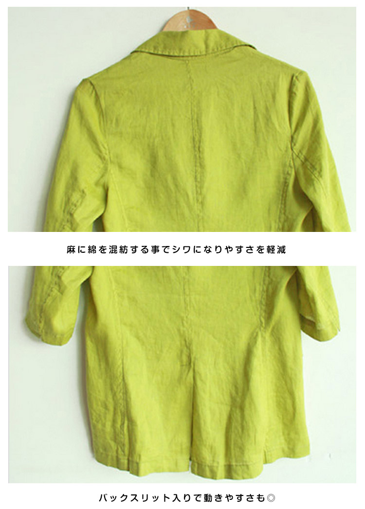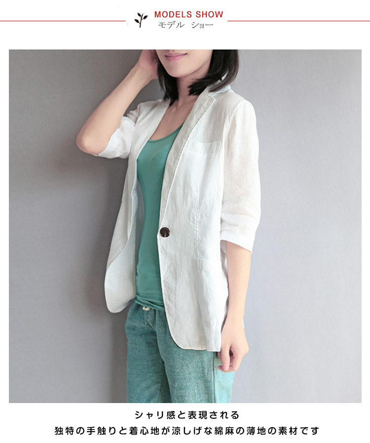 | 自然な風合いの綿麻素材を使用した薄手テーラードジャケット♪シャリ感と表現される独特の手触りと着心地が涼しげな綿麻の薄地の素材です。 ストンと落ちるシルエットは、体のラインをスラリと演出し美ボディ効果バツグンな1着です。 合わせやすく、こなれ感たっぷりに仕上がる着丈もポイント! かっちりとしすぎない、絶妙なカジュアルさが◎。 | |