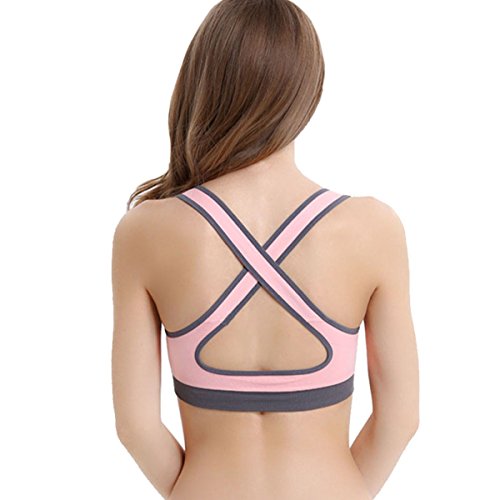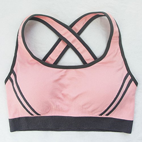 iFashion Women's Push Up Padded Cross Back Wirefree Sports Bra Large Pink
