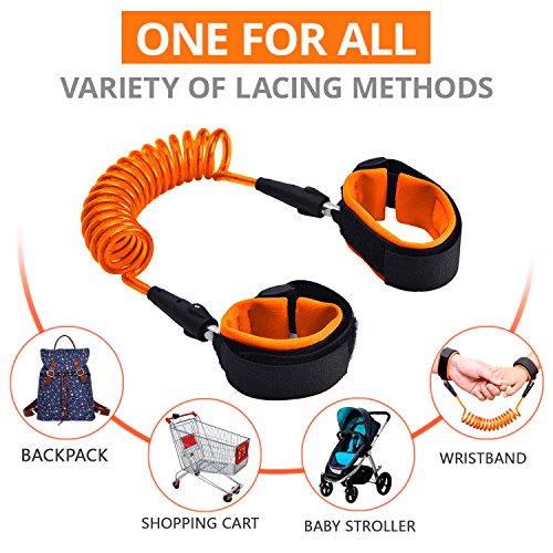 ✔️VARIETY OF LACING METHODS - Now you don’t have to pick different backpack leashes and make your kid wear it all the time. Use wrist leash to attach their favorite backpack on the way to school, to your Shopping Cart when you have too many bags to hold, Belts, Baby Strollers or pretty much anything you want without buying ten different leashes.