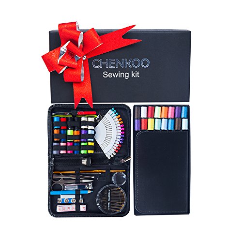 Chenkoo Compact Emergency Sewing Kit with Sewing Supplies, Extra 20 Spools of Thread and 18 Pins - Black