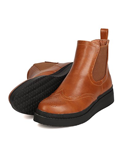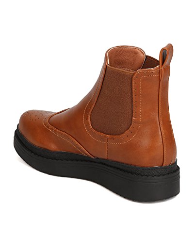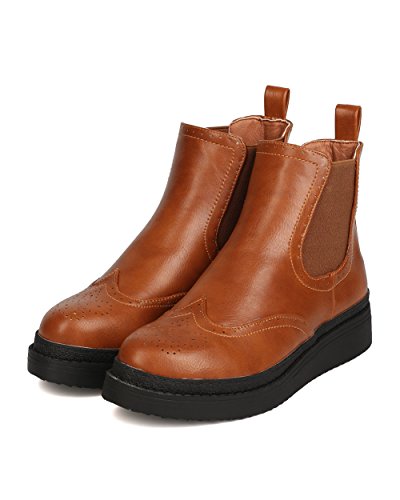 Studio : C Label Publisher : C Label Binding : Apparel Product Description These vintage inspired booties are made with a leatherette upper, almond toe, and stitch details. Also made with a raised outsole, elastic side panels, and easy to pull on design. 0