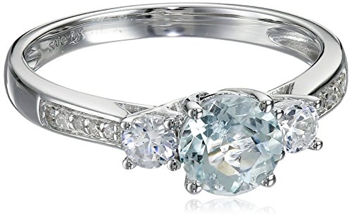 -. Feature : 10k white gold ring with aquamarine centerpiece flanked by smaller diamond rounds / All our diamond suppliers confirm that they comply with the Kimberley Process to ensure that their diamonds are conflict free. / Imported