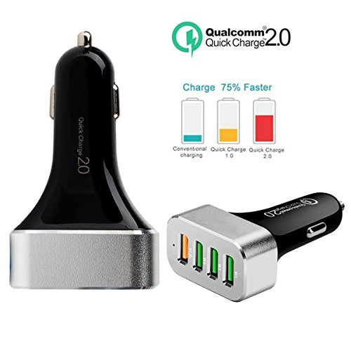 -. Feature : Qualcomm Quick Charge 2.0: Charges compatible devices up to 75% faster. Get up to 8 hours use from just 15 minutes of charging! / This product still charges iPhones and iPads at their full speed even without support of Qualcomm Quick Charge 2.0 Technology / Most Powerful: This portable car charger simultaneously charges up to 4 devices and Delivers an whopping 54 watts of power at once. / Quick Charge 2.0 Compatible models: iPhone 6S/6/6 Plus iPad Air 2 mini 3 Samsung Galaxy S7/S6/ Edge/Edge Plus, Note5, Note 4/Edge, Nexus 6, Sony Xperia Z4, Z4 Tablet, Z3, Z3 Compact, Z3 Tablet Compact, Z2 Tablet, Motorola Droid Turbo, Moto X 2014, HTC One M9, HTC One (M8), HTC Butterfly 2, One Remix (Verizon Mini 2), Desire EYE, LG G4 G5 G Flex2, Xiaomi Mi3, Mi4, Mi Note, Asus Transformer T100, Asus Zenfone 2, Yota Phone 2,Sharp Aquos Pad,Zeta,Sharp SH01G/02G,Fujitsu Arrows NX,and more / Full Compatibility: Also charges all non-Quick Charge 2.0 phones and tablets at maxmimum speed (up to 5 volts / 2.4A Max) with Auto Detect Technology. Most Powerful: This portable car charger simultaneously charges up to 4 devices and Delivers an whopping 54 watts of power at once. This product still charges iPhones and iPads at their full speed even without support of Qualcomm Quick Charge 2.0 Technology