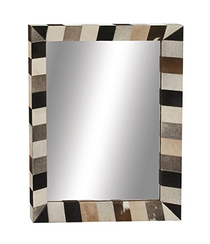 Deco 79 Wood Real Leather Wall Mirror 36"W, 48"H