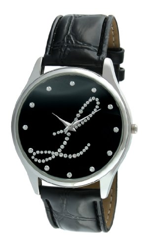 Viva Silver Tone Round Crystal Dial Initial "L" Black Strap Watch #V1650B-L