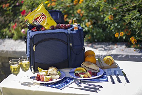 Picnic Time 'Malibu' Insulated Cooler Picnic Tote with Service for 2, Navy Blue