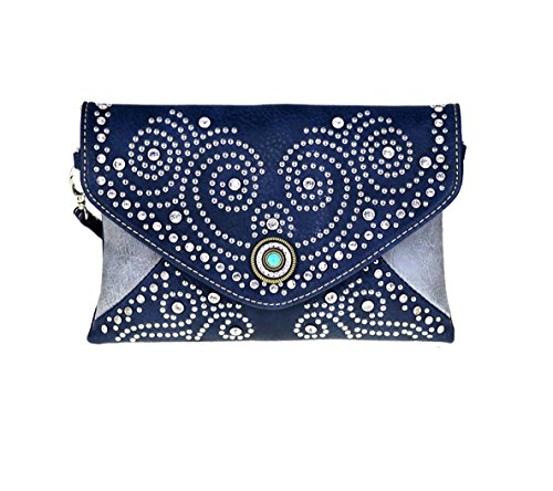 -. Brand : Montana West -. Color : Black -. Department : womens -. Feature : 9.5" X 1." X 6.5" with adjustable removable strap up to 22"; single removable strap to convert clutch to wristlet / Turquoise stone rhinestones concho on the flap with magnetic closure ; silver studs swirl pattern and crystal studs / Inside clutch include a zippered pocket and 2 open pockets / A zippered pocket on the back -. ProductGroup : Shoes -. ProductTypeName : HANDBAG -. Size : Small -. Title : Montana West Rhinestone Concho Messenger Cross Body Hipster Purse Wallet