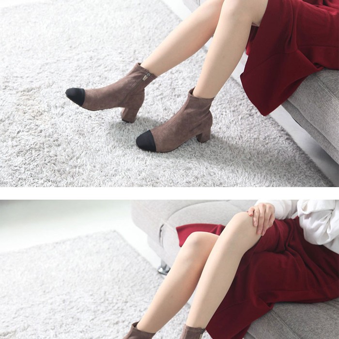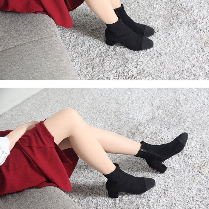 商品名:ストレッチブーツ レディース スエード調 チャンキーヒール 太ヒール 2017 秋冬 ファッション 靴 婦人靴