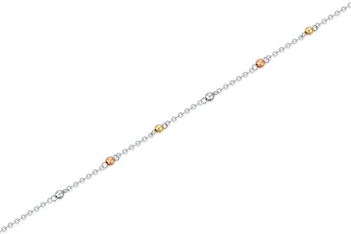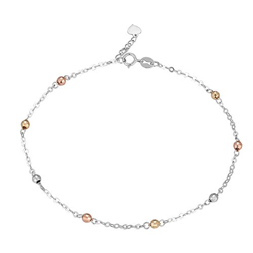 -. Title : 14K Tri-Color Gold Yellow Rose & White Beads Anchor Chain Anklet (9')