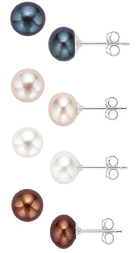 -. Feature : Enhance your attire with this Genuine Cultured Pearls multi color earring set. / 9-10mm Pearl Colors: White, Dyed-chocolate, Dyed-black, Pink / Hypoallergenic Sterling silver post and back. / Pearl Stud Earrings are available in many colors, sizes and shapes. Different metals are also available If you don't see it listed contact us for more options. / Pearl Earrings are a gift everyone will enjoy. A feminine piece of jewelry which can be worn to work, a day at the mall or a wedding party. Always a classic! Forever a favorite.