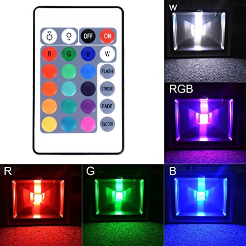 High quality waterproof RGB LED Floodlight with Aluminium Alloy Heat Sink and a infrared remote controller.