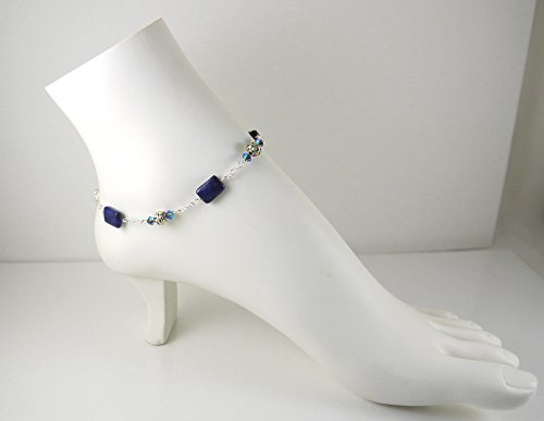 -. Title : Illusion Style Lapis Anklet - 9 1/8", with Swarovski Crystals