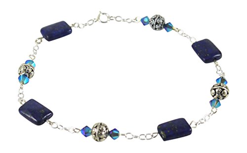 -. Feature : 8mm Alloy Beads / 8 x 13mm Lapis Square Beads / 4mm bright blue color Swarovski Crystal / Sterling Silver Cable Chain and SP.R.Ing Ring Clasp / 9 1/8", Sterling Silver with Alloy Beads