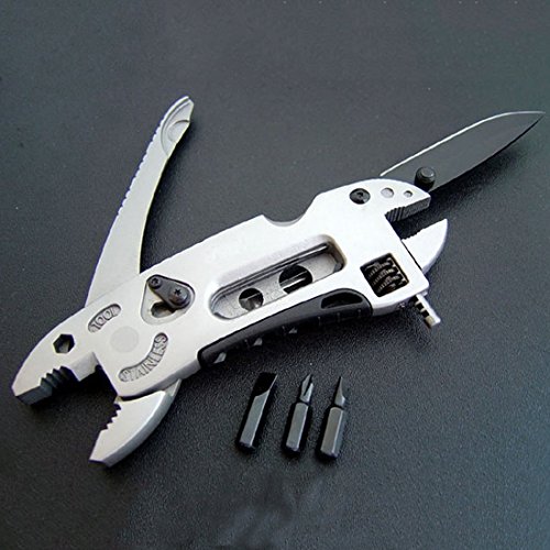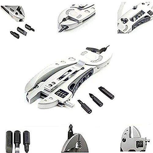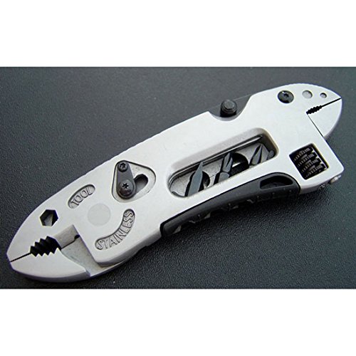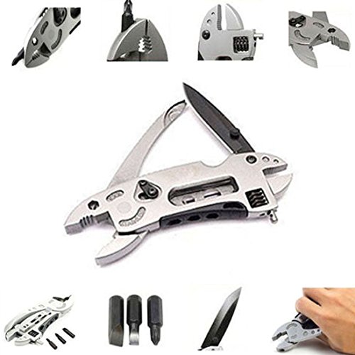 .Color:Silver .Material: Stainless steel .Main function: Poket Wrench, Pliers, Wire cutter, Knife, 3 additional screwdriver bits .Total Length: 120mm .Main Blade Length: 65mm .Package Dimensions: 122mm(L) x 43mm(W)x 18mm(T) .Package Weight: 160g .Packing: Internal OPP Bag External White Carton Box