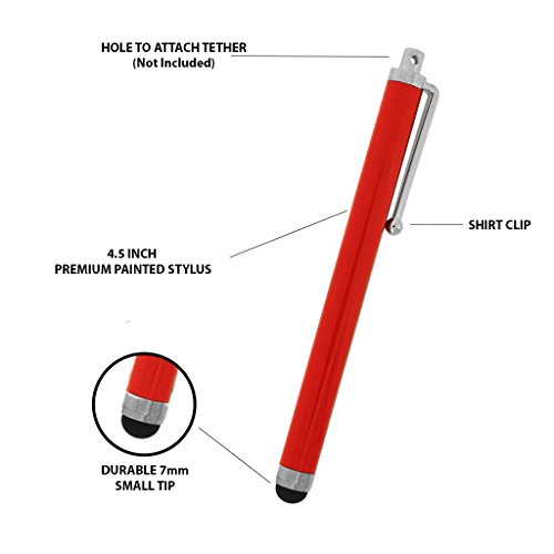 -. Feature : ♦ Value Pack with Free Cleaning Cloth and Vinyl Storage Pouch / ♦ Durable Soft Touch tip protects screen from smears, scratches and fingerP.R.Ints / ♦ Use with any capacitive touch screen Tablet and Smartphone / ♦ Made of lightweight aircraft-grade aluminum. Comes with a shirt clip, and tether hole (Tether sold separately) / Package Includes: 10 Styluses - [30 DAY MONEY BACK GUARANTEE]