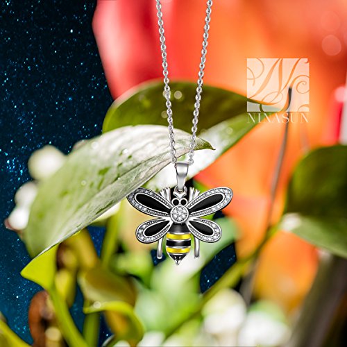 -. Title : NINASUN "Honerybee" 925 Sterling Silver Animal Style CZ Enamel Pendant Necklace Women Jewelry
