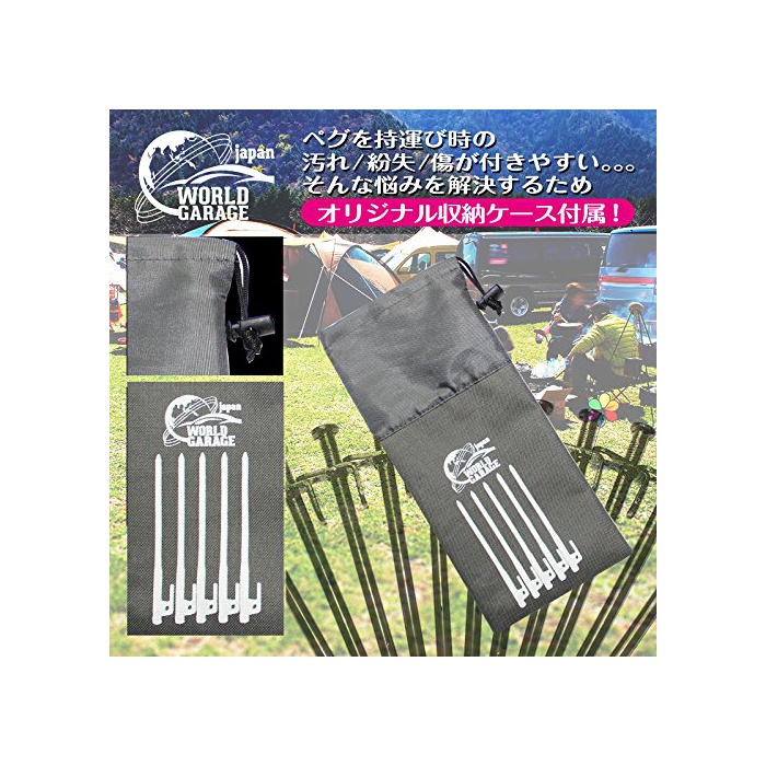 【WORLD Japan GARAGE】 페그(말뚝) 스테이 텐트 페그(말뚝) 캠프 용품 아웃도어 용품 20cm 10개 세트 등산 수납 봉투 첨부