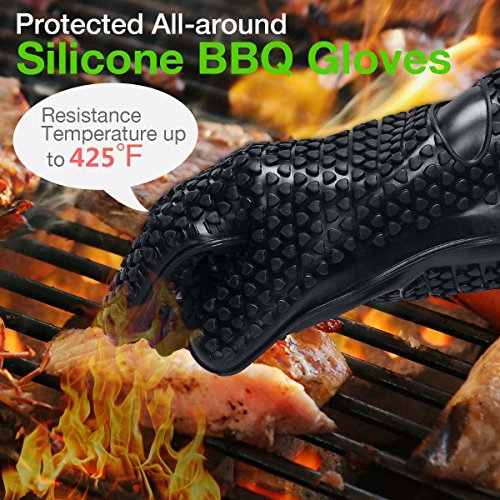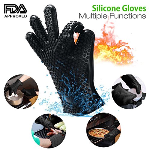 - ♥SILICONE GLOVES: 425°F Max operating temp, non-slip surface, water proof, stain and odor resistant, food grade for handling hot or frozen foods directly while protecting your hands from spills and burns. Washes easily and dishwasher safe.