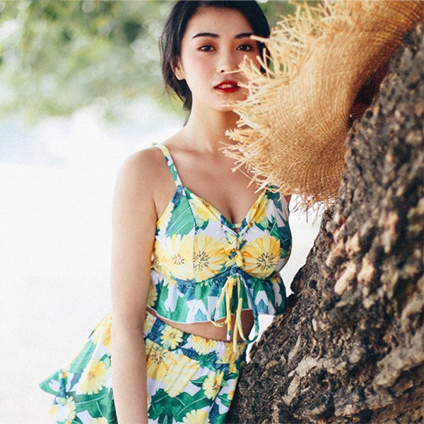 シンプルながらも目を引くアイテムです♪ 気になる体形も可愛くカバーできるので、ママ水着としても大人気の水着です♪
