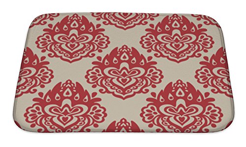 Gear New No Slip Microfiber Memory Foam Damask Pattern Flourish Bath Rug Mat, 24" X 17"