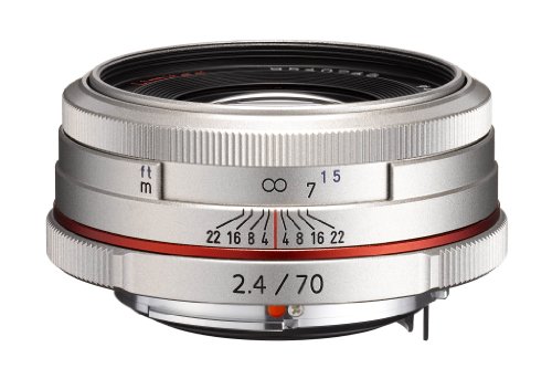 -. Binding : Electronics -. Brand : Pentax -. Color : Silver -. EAN : 0027075273702 -. Feature : High-grade multi-layer HD (High Definition) Coating. Equivalent to 105mm in 35mm film format / Quick Shift focus system / Super Protect coating of the front lens element for effective protection against dirt and finger marks / 9 blade diaphragm for stunning bokeh / Unique super-compact design in two colors -. IsAdultProduct : 0 -. IsEligibleForTradeIn : 1 -. Label : Pentax -. Manufacturer : Pentax -. Model : HD Pentax DA 70mm f/2.4 Limited Silver -. MPN : HD Pentax DA 70mm f/2.4 Limited Silver -. PackageQuantity : 1 -. PartNumber : HD Pentax DA 70mm f/2.4 Limited Silver -. ProductGroup : Photography -. ProductTypeName : CAMERA_LENSES -. Publisher : Pentax -. Size : 3.60in. x 3.80in. x 3.30in. -. Studio : Pentax -. Title : Pentax K-Mount HD DA 70mm f/2.4 70-70mm Fixed Lens for Pentax KAF Cameras (Limited Silver) -. UPC : 027075273702 -. Warranty : 1 year parts and labor