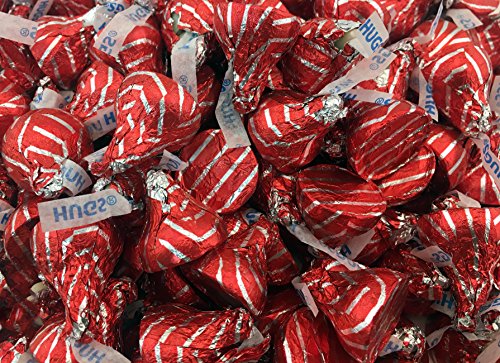 -. Title : Hershey's Kisses, Hugs Creme and Milk Chocolate Kisses, Red Silver Striped (Pack of 2 Pound)