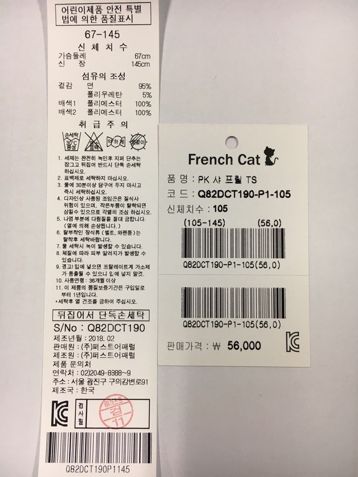제품소재 : 겉감 면95% 폴리우레탄배색 1.2 폴리에스터100%