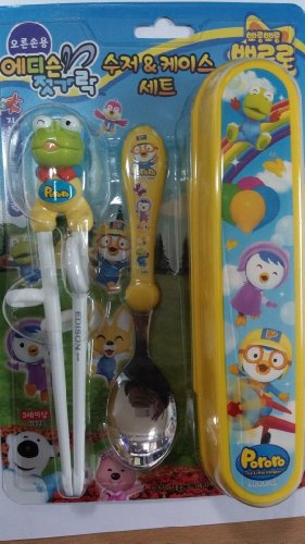 Pororo Edison Kid's Chopsticks & Spoon Set With Case (Pororo-Crong-set)