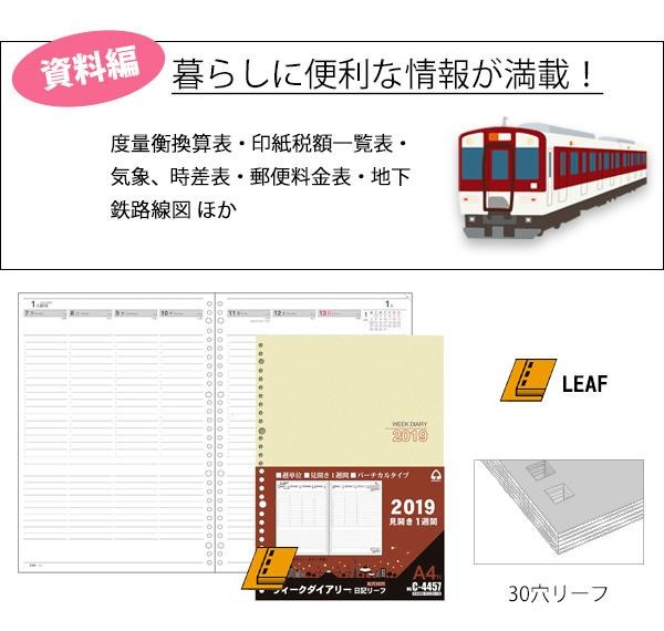 | 仕様 | 日記リーフ(30穴) 2019年版・1月始まり |