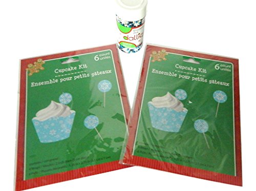 3 Pc Cupcake Decorating Bundle: 12 Cupcake Wraps, 12 Picks, Coordinating Sprinkles (Snowflake)