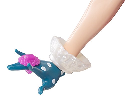 Posable doll wears a charming outfit that mixes bright colors and patterns