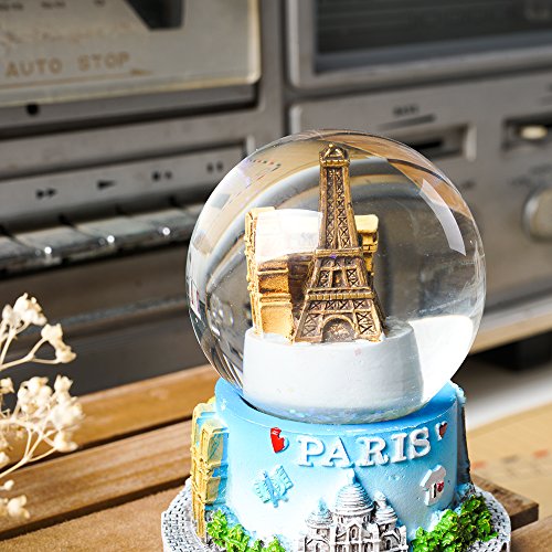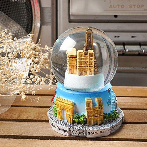 WOBAOS Snow Globe crafts- Sculptured Resin Water Ball - Christmas Valentine's day birthday holiday new year's gift (Diameter 60mm-80mm) (Diameter 65mm, PARIS)