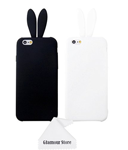 iPhone 6 Case,Cute Lovely Rabbit Silicone Bunny Case Cover Protector For Apple iPhone 6 6G 4.7 inch with Furry Tail With Free Cleaning Cloth As a Gift (Black)