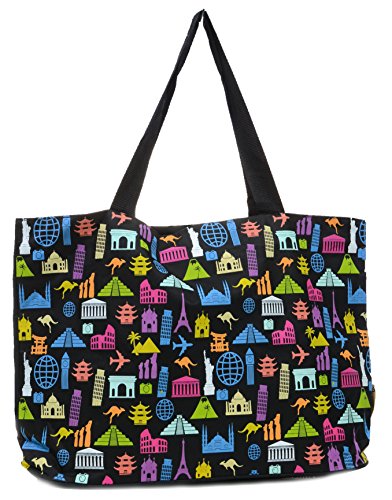 Colorful International Monuments Vegan Leather Oversized Travel Tote Bag