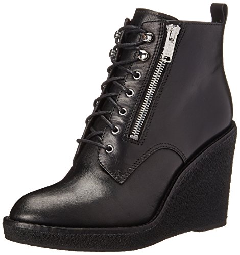Platform-wedge ankle boot featuring lace-up vamp and functional zippers at sides