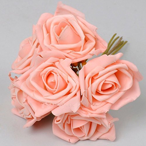 Kubert® 6pcs Light Pink- Artificial Rose Flowers for Wedding Party Bouquet Wedding Flowers Bridal Bridesmaid Bouquet Home Party DIY Craft Decoration (Light Pink)