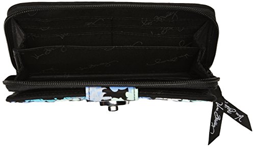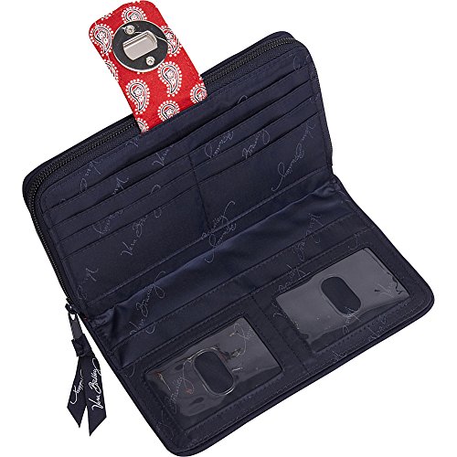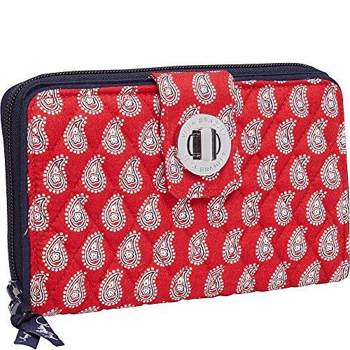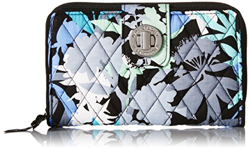 -. Binding : Apparel -. Brand : Vera Bradley -. Color : Blue -. Department : womens -. Feature : Quilted zip-around wallet with logo-engraved turn-lock clasp -. Label : Vera Bradley -. Manufacturer : Vera Bradley -. Model : 12740 -. PackageQuantity : 1 -. ProductGroup : Shoes -. ProductTypeName : ACCESSORY -. Publisher : Vera Bradley -. Size : 7¾" W x 4¾" H -. Studio : Vera Bradley -. Title : Vera Bradley Turn-Lock Wallet