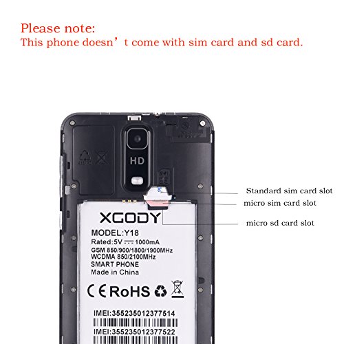 -. Feature : GRAND DESIGN: The design of XGODY Y18 is a combination of art and material. Cramming a massive 6" display into a slim and compact housing to ensure user comfort is a challenge that XGODY overcame . Metal finish on the middle housing brings a touch of premium. There are four colors available in Black, white, gold and rose gold. / BIGGER SCREEN & BIGGERSTORAGE: XGODY Y18 comes with 6 inch screen. What's more, it is armed with ROM 16GB & RAM 1GB, which is only for you to have an unforgettable experience with this phone. / THE LATEST Android OS: Coming with the latest Android 5.1 Lollipop Operation System, it runs with more apps like WhatsApp, Facebook, Google and for more. / PHOTO SHOW:Utilizing a 8MP camera along with 5MP front selfie camera, XGODY Y18 offers you the fully optimized camera experience. All the images are your life and all should be a cherish moment forever. / FAST PROCESSOR: Powered by a CPU MT6580M quad-core processor, the XGODY Y18 is built to keep you at peak multitasking, whether that's browsing through your favorite apps, binging your favorite shows, or gaming to your heart's content.