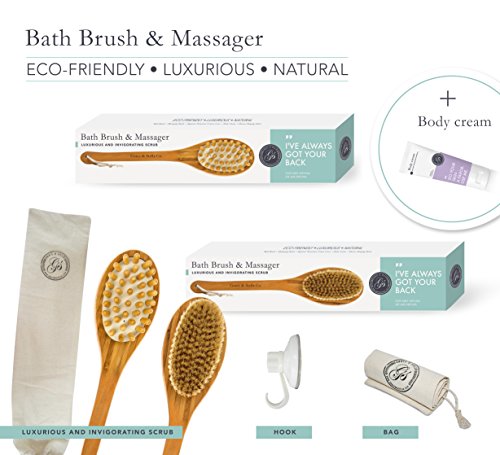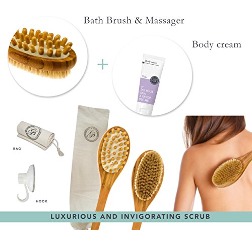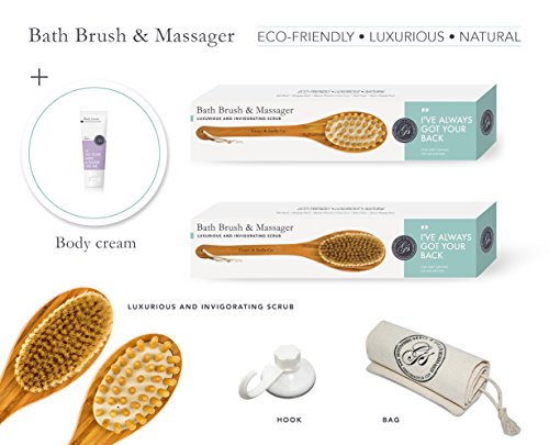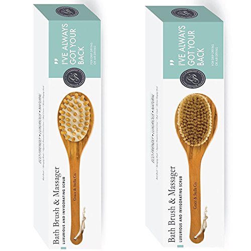 Studio : Grace Stella Co. Publisher : Grace Stella Co. Binding : Misc. Product Description Your search for the perfect Bath Brush Set is finally over. When you purchase Grace Stella's Bath Brush Set today here's what you should do.. When that Amazon shipment arrives at your door, take out our cute little box and admire the set of Dual Brush Body Cream Cotton Cover Shower Hook that will forever change the way you bath. You now have in your hands the best bath brush on the market. Why choose us? We've made a superior set that will answer all your skin needs, from harsh body skin up to sensitive gentle skin. ? Dry brushing body brush, with natural boar bristles massaging nubs ? FREE Body Cream, Cotton Cover Shower Hook ? Loofah bath back scrubber ? Boar bristle brush for skin exfoliation The dry brushing body brush - Ideal for dry skin brushing, cellulite reduction and lymphatic drainage. Made with highest quality natural boar bristles with perfectly curved cut and medium firmness - not too stiff, yet not too soft for your skin. The loofah bath back scrubber - Made from natural loofah fiber which is best for skin scrubbing, cleansing and exfoliating in bath shower. Made with long lasting strong handles. Comes with a long 16" handle a strap size of 27.5" X 3.2" - perfect for hard reaching areas on your back and body. The natural boar bristle brush - Designed with softer natural boar bristles for use on gentle and more sensitive skin for exfoliating and deep cleansing. Ship from the USA. BETTER THAN MONEY-BACK GUARANTEE It's because of this that we're able to make a guarantee unlike any other you've seen. If you don't see the results or if you don't feel it was worth every penny of your investment today, you'll get a full refund. That's how confident we are you'll be happy and keep coming back for more. So order now and when you do consider getting 2, one for yourself and one for your best friend. 0