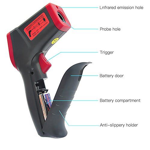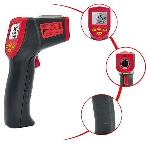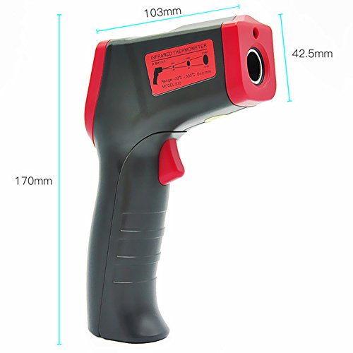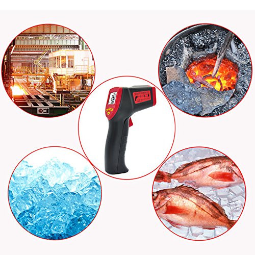- Portable easy use infrared thermometer gun for daily life use, cooking, BBQ, Meat, car, etc., measurement range -32°C-530°C (-26°F-986°F)